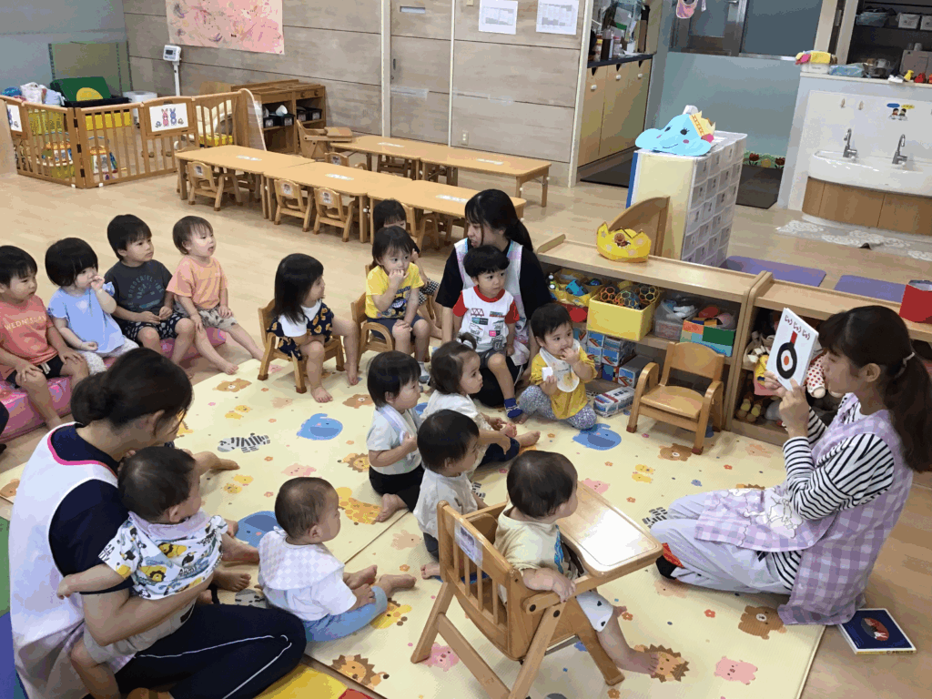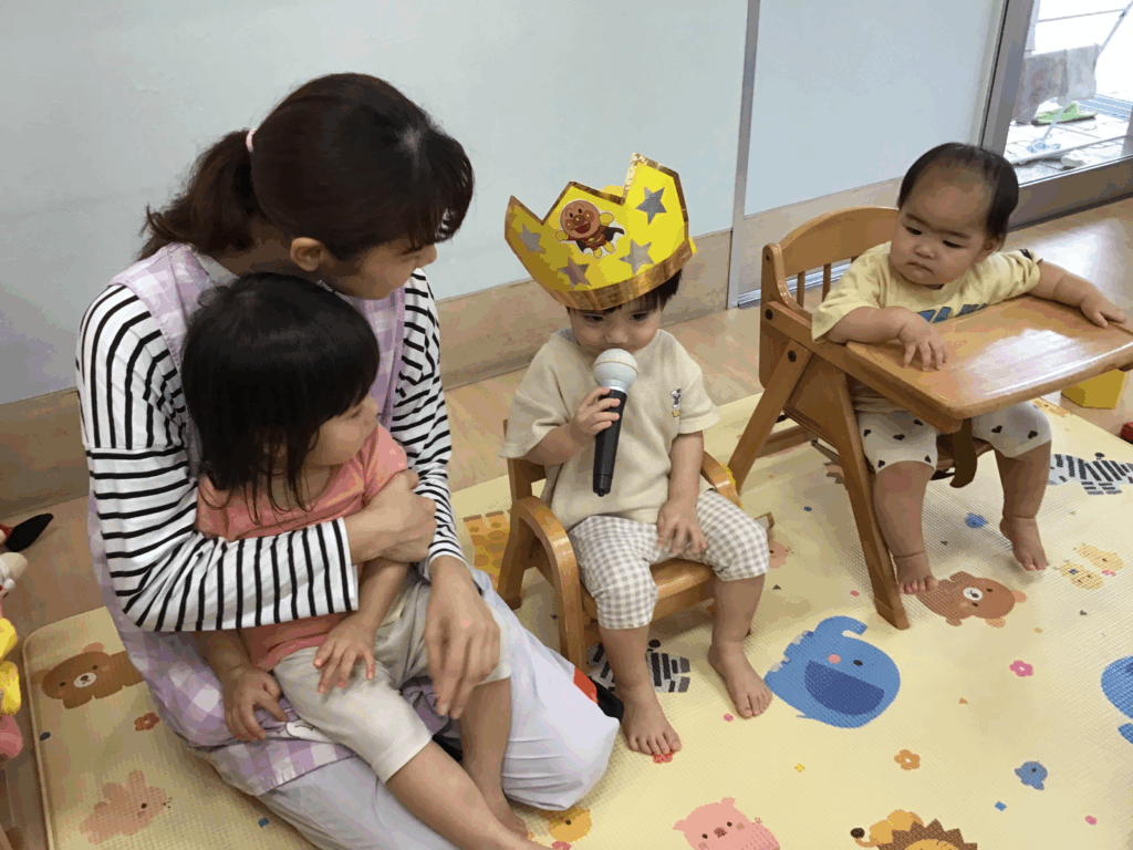みんなで「たんじょうびのうた」を歌ってお祝いし、先生が選んだ楽しい絵本の読み聞かせもありました。名前を呼ばれると、ちょっぴり恥ずかしそうにしながらも、ニコニコ笑顔を見せてくれた主役の子どもたち。拍手をしたり、一緒に歌ったりする子どもたちの姿に成長を感じました。