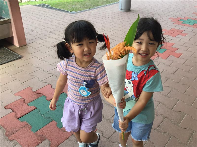 今月のお花を🌸職員室に取りに行くと子どもたちからお手伝いをしてくれました。お花も子どもたちもニコニコ☺️してます。