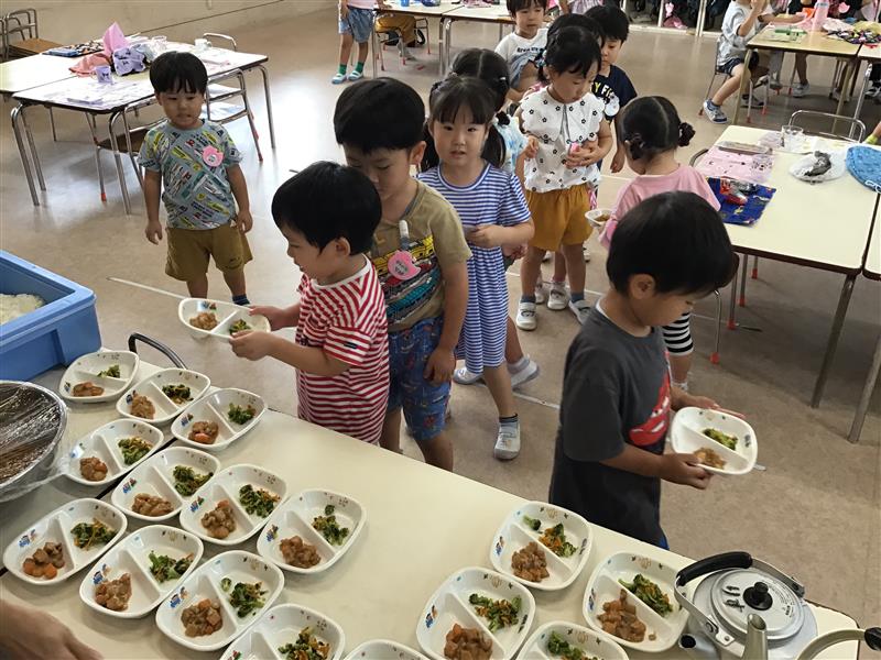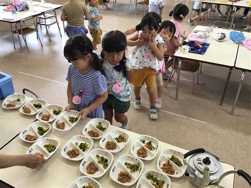 美味しそうな給食 「たくさん並んでるぅ〰︎」「どれにしようかなぁ〰︎」