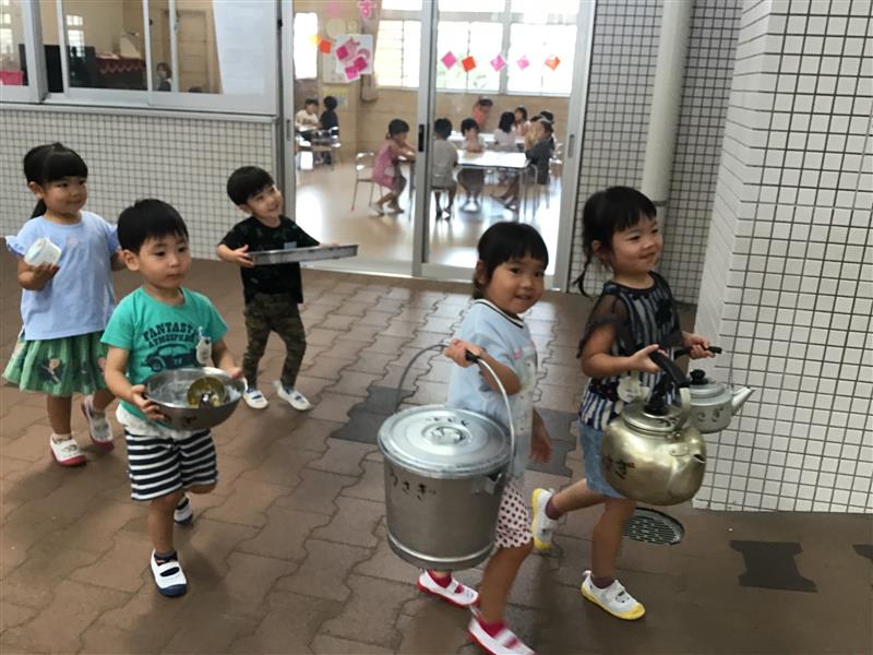 おてつだいが大好きな年少さんたち。いろいろんなところでお手伝いをしてました。