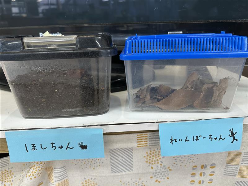 幼稚園で見つけたダンゴムシとヤモリを年中組のお部屋で観察することになりました!