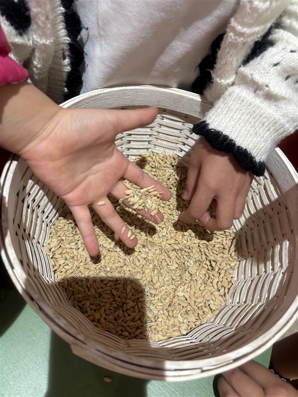 『こんなのが米になるんだ❣️触ったらザラザラ
