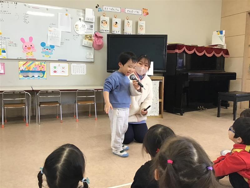 「い」がつく言葉はどんな言葉があるかな??と、お友達と一緒に考え、みんなの前で発表をします