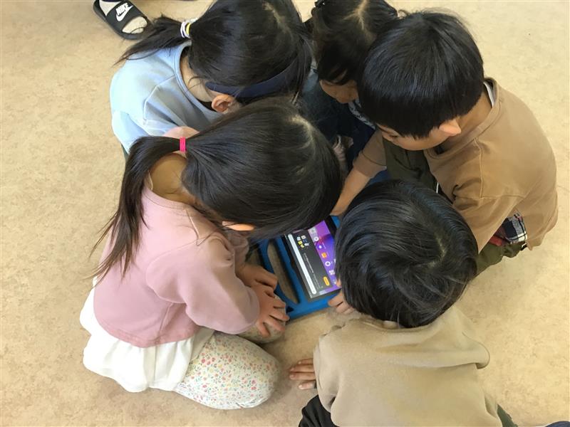 撮影後は撮った写真をみんなの前で発表しました。子どもたちならではの視点で素敵な写真がたくさん撮れました。楽しみながらタブレットに親しみ、友達と協力する経験にも繋がる充実したひとときとなりました。