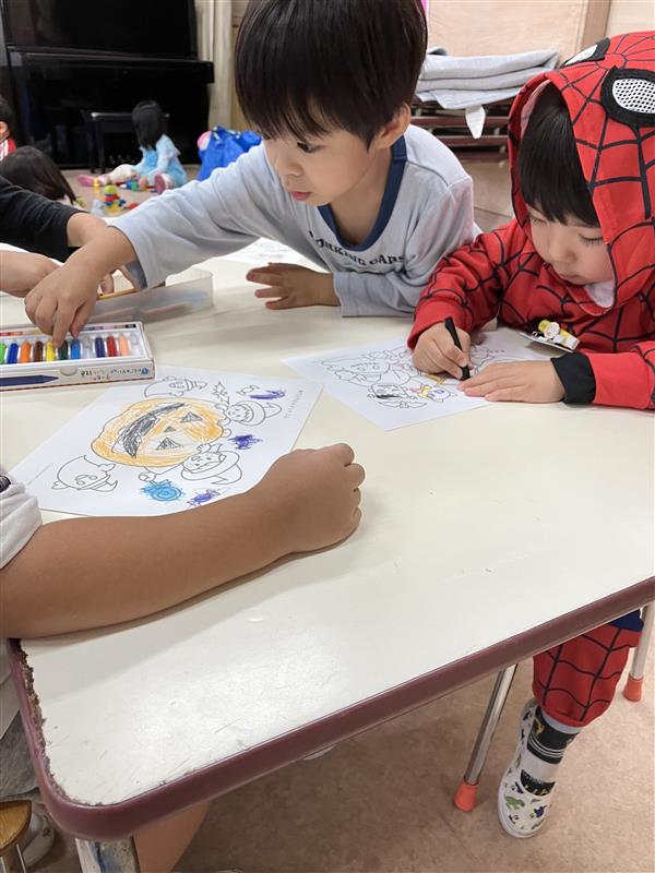 年少組さんはハロウィン🎃の塗り絵をしたよ!