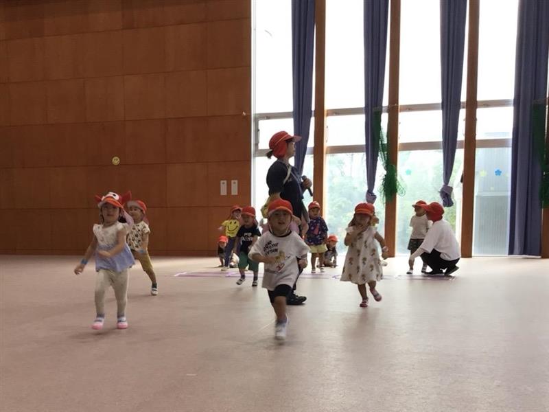 もうすぐ運動会。いちご組さんは、かけっこ・お遊戯の練習に取り組んでいます。かけっこの練習では、「よーい、ドン」の合図でスタートすると、一生懸命前を見て走る姿が、とてもかわいらしいです♡お遊戯では、音楽に合わせて、うさぎの耳みたいに手をぴょんぴょん動かしたり、友だちとジャンプしたりと楽しんで踊っていました♪初めは恥ずかしそうにしていた子どもたちも、練習するたびに少しずつできるようになってきました。運動会を楽しみにしている、いちご組さんです。