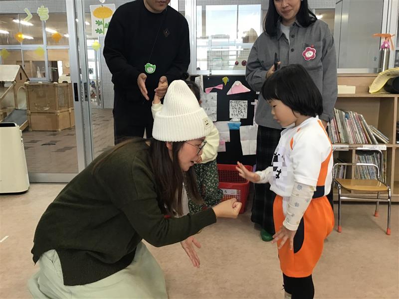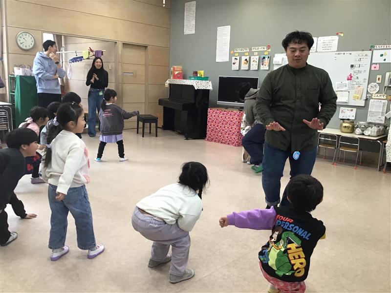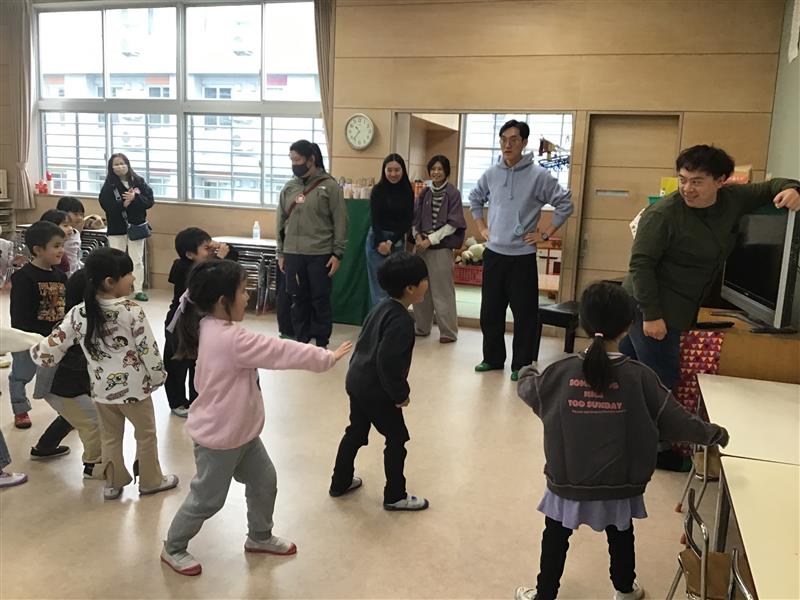 中国語のじゃんけんも教えていただき、一緒に「じゃんけん列車」をしたり、中国語での「だるまさんが転んだ」のゲームをしたり、仲間集めゲームをしたりと楽しみました。