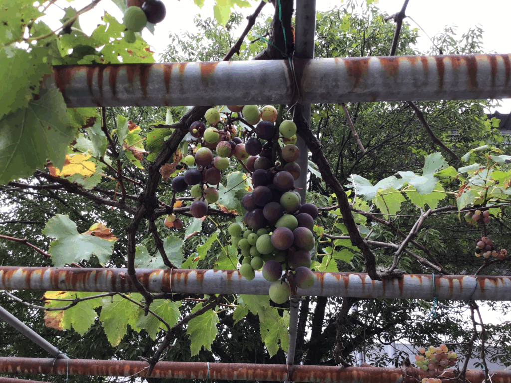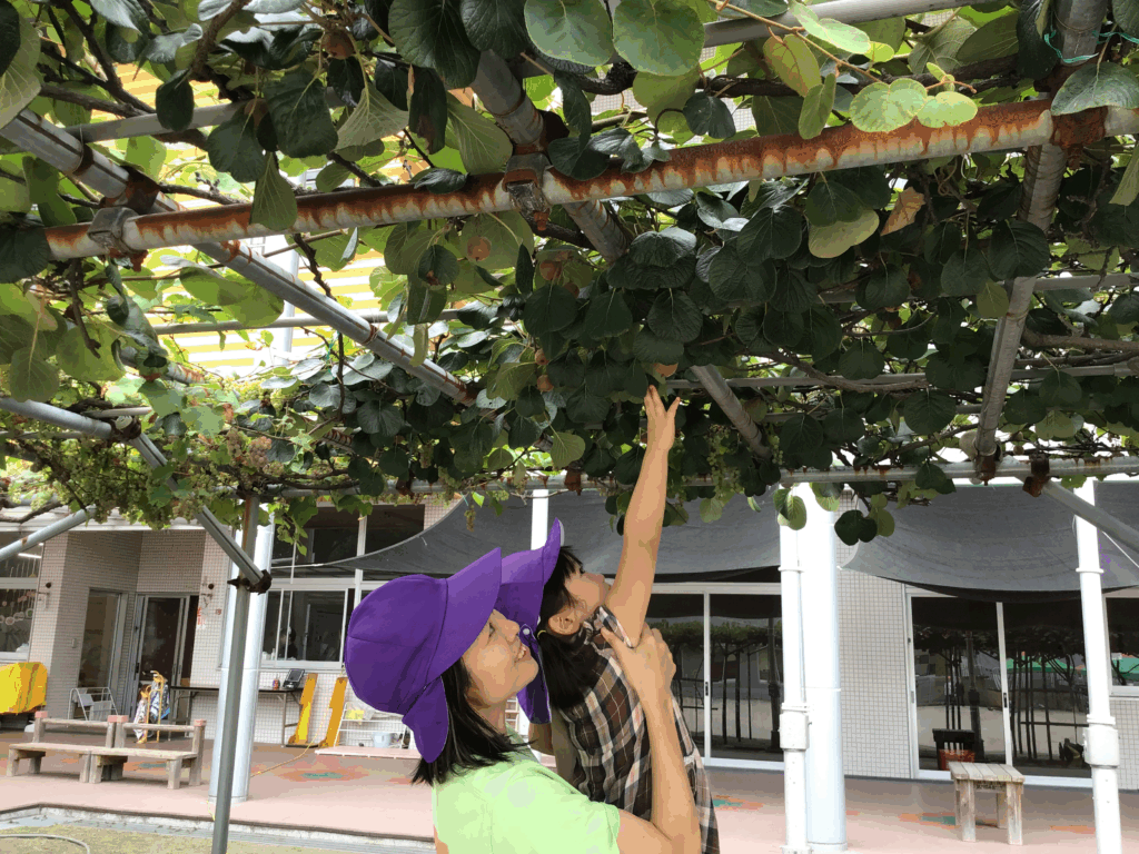 園庭にブドウとキウイがぐんぐんと実をつけてくれました。