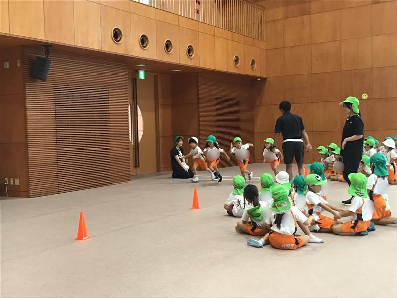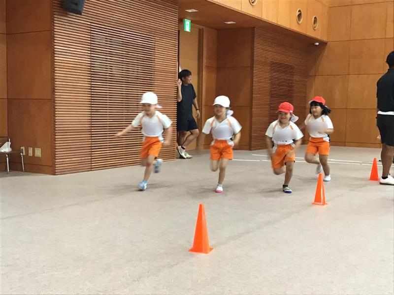 かけっこはスタートの姿勢やゴールまでの走り方を意識して走れるようになり年長さんらしい逞しさを感じます。最後まであきらめずに走り切る事の大切さを学びながら、お友達を応援する姿も見られ、心の成長がみられます。