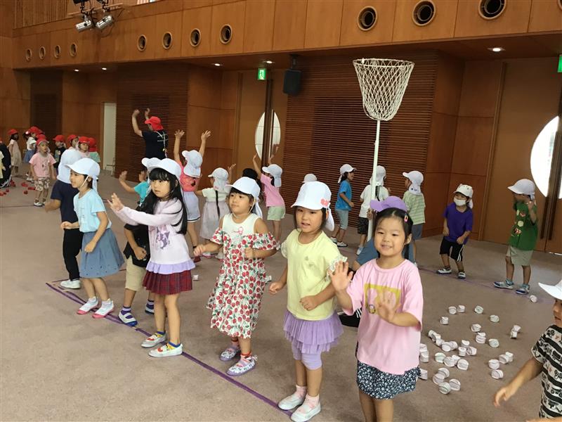 親子競技の玉入れでは「どうしたらたくさん入るか」「相手チームに負けないように頑張ろう!」と声を掛け合っています🙂勝って喜び、負けて悔しがる経験も大切な学びのひとつ。本番ではお家の方とも力を合わせて楽しく頑張ってくださいね🎵