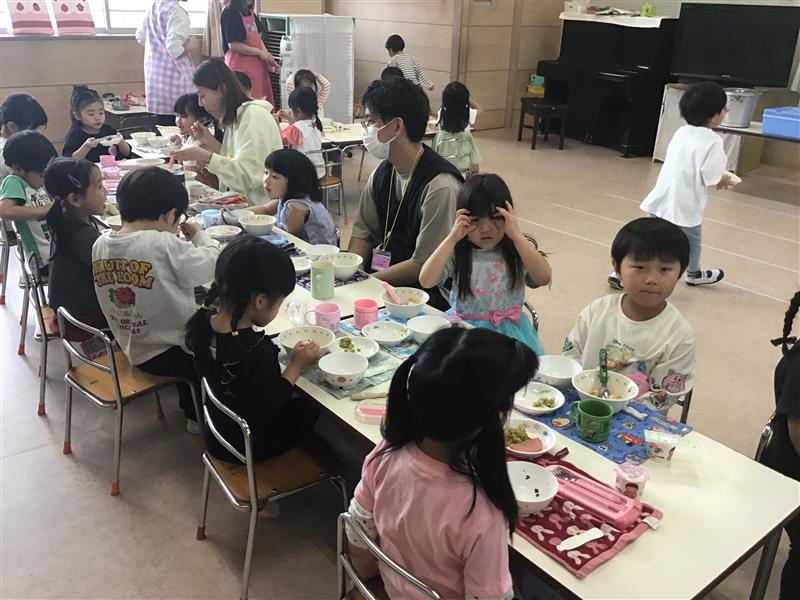 最後は、大好きなお父さんやお母さんと一緒に給食とケーキを頂きました。誕生児だけの特別感に大満足の一日でした♡