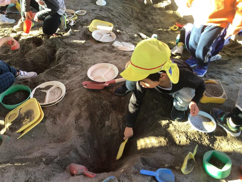 砂の感触を楽しみながら掘ったり、作ったりしている顔は真剣そのものです😊