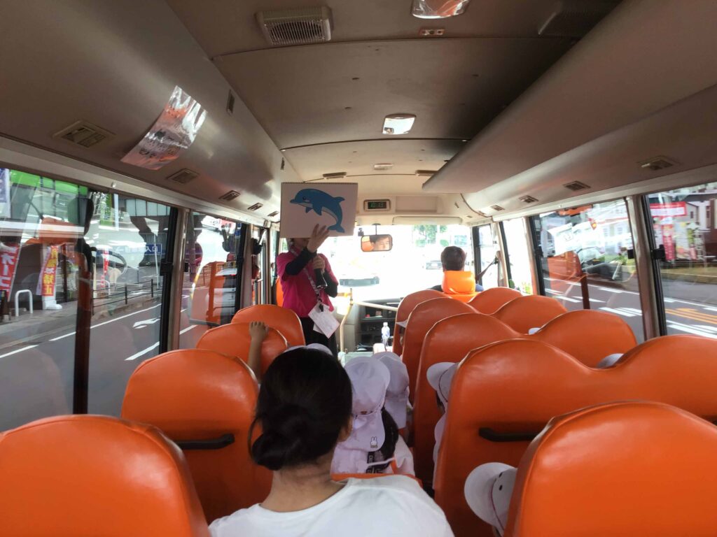 車内では、先生がクイズを出したり、みんなで話したり楽しそう