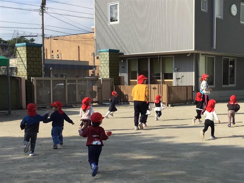 先生と一緒に追いかけっこ! 「先生、こっちだよー」 「みんな、まってー」