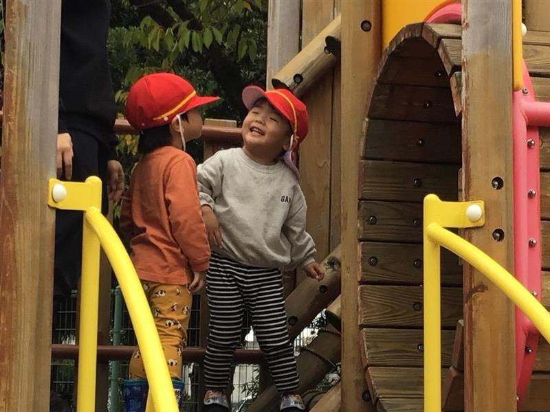 いちご組さんの子どもたちは、コスモスに興味津々「きれいだね!」「お花おおきいね」と、嬉しそうに眺めていました。落ち葉を集めたり、砂場や遊具で元気いっぱい体を動かしたりと、秋ならではの遊びを満喫する姿が見られました。
