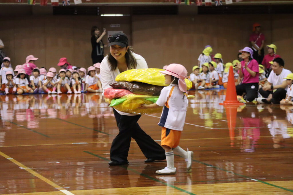 年中さんの親子競技「でかぱんリレー」 こころを一つに いち・に、いち・に