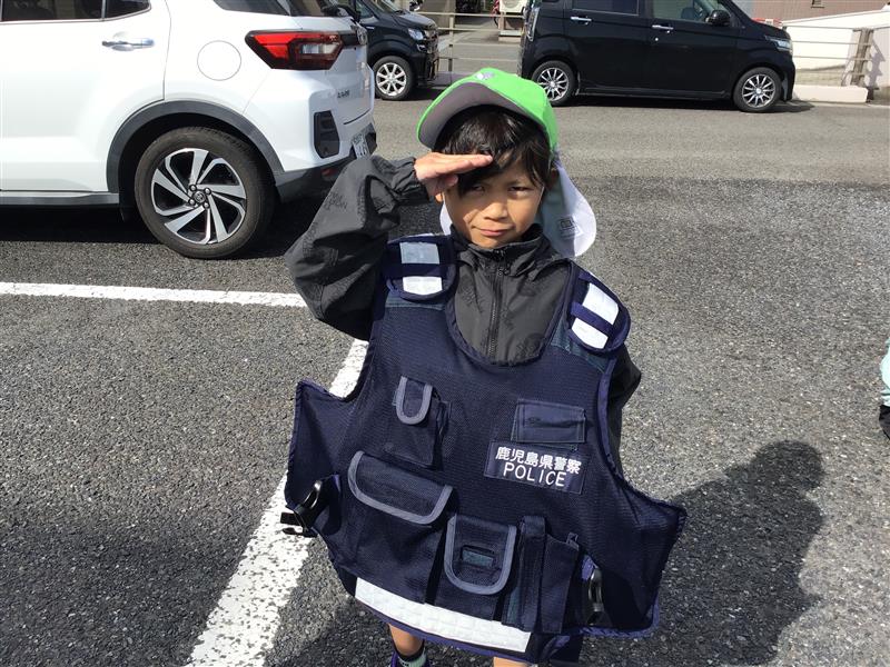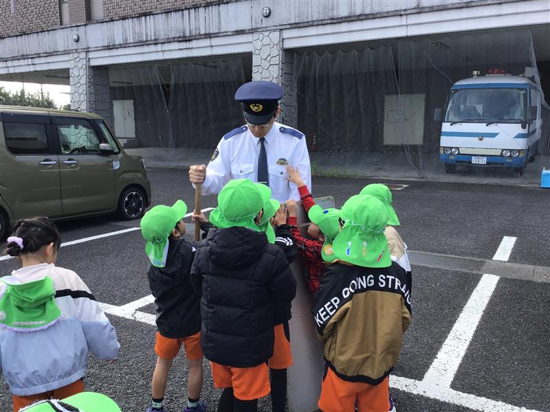 年長さんが鹿児島南警察署へ見学に出かけました。当日は警察官の方々に温かく迎えていただき、子どもたちにも分かりやすい言葉で、警察の仕事や地域の安全を守る役割について丁寧に説明していただきました✨また、パトカーなどの装備を間近で見学し、一部の用具に触れさせていただく体験も行いました。子どもたちは、興味津々で質問をしたり、真剣な表情で話を聞いていました。今回の見学を通して、社会の中で働く人々への関心や、交通ルール・防犯意識を育むことができました。